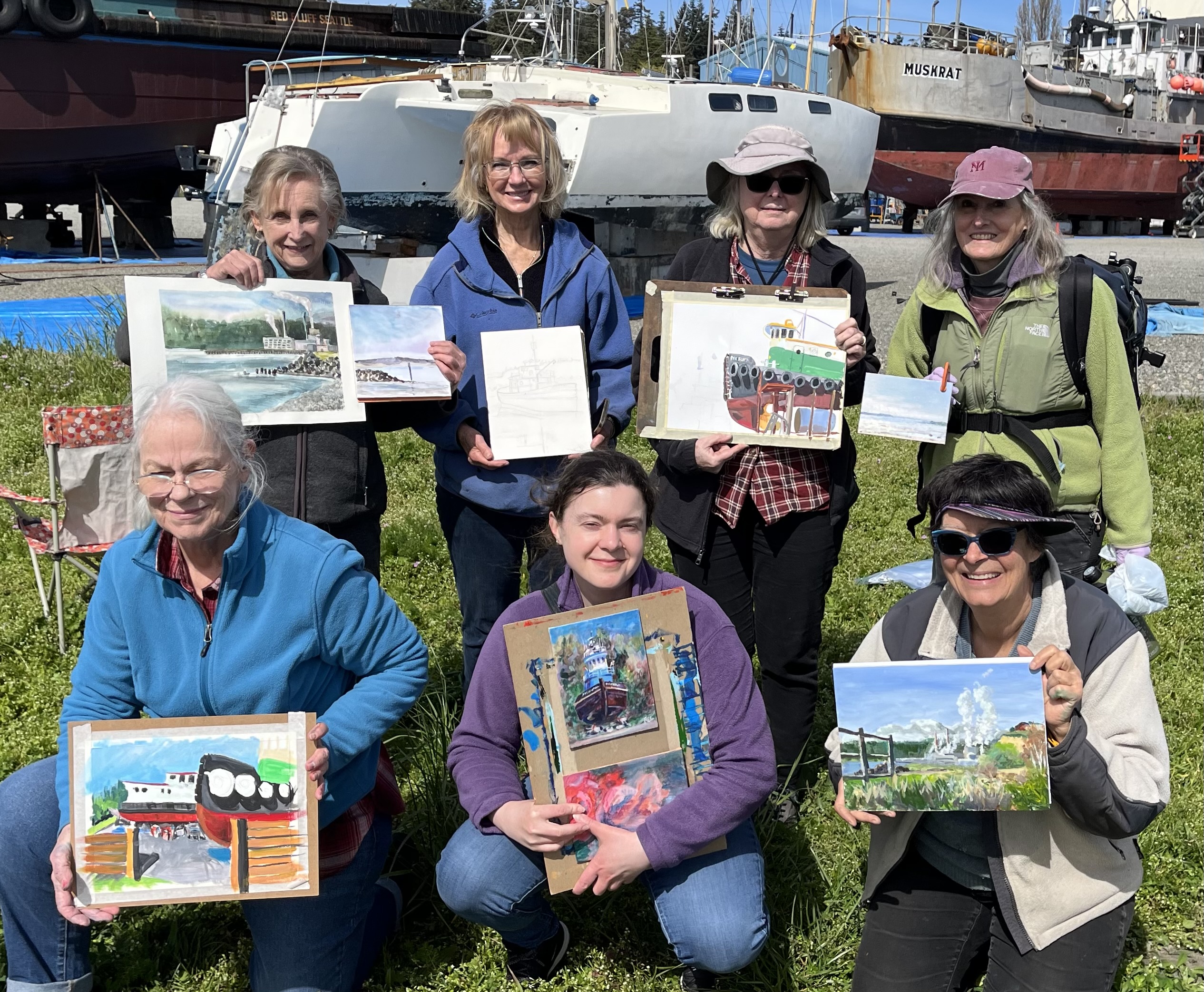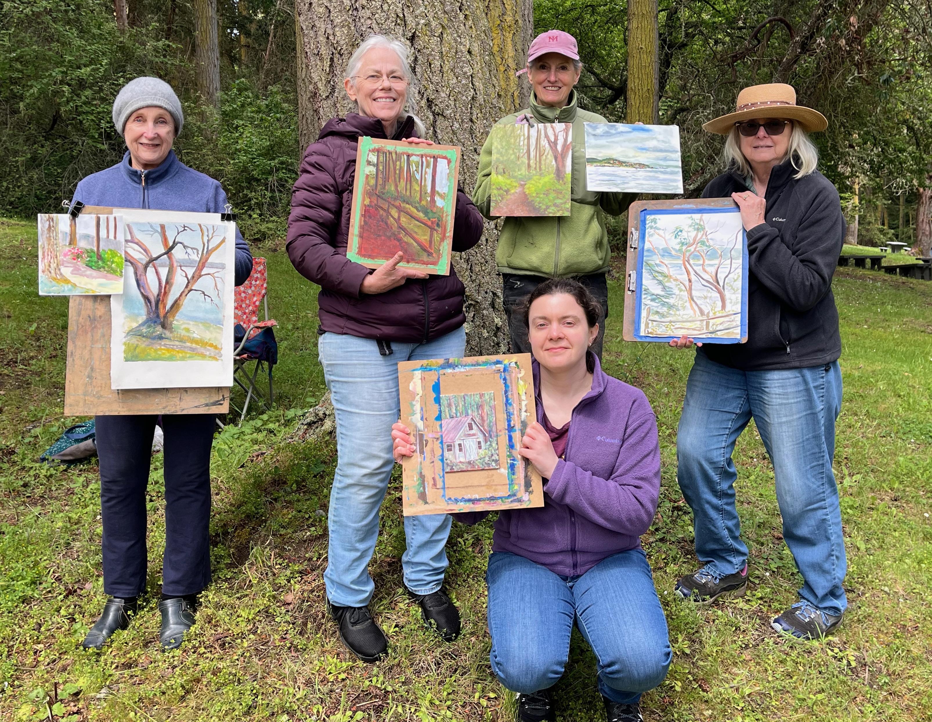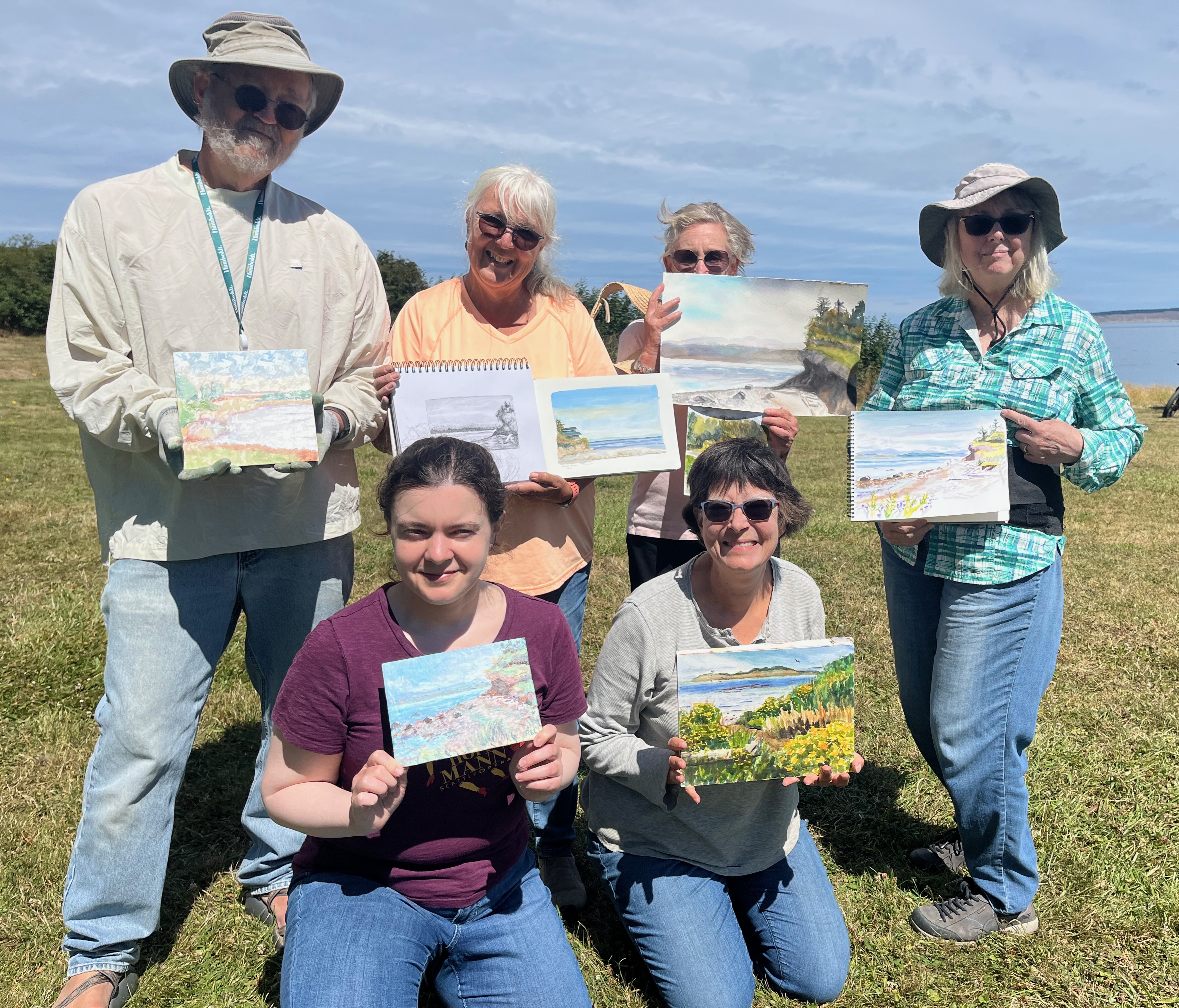 What we do: We spend a few hours creating an artwork inspired by our amazing local scenery. About a half-hour before we break, we gather to admire what each person has done.