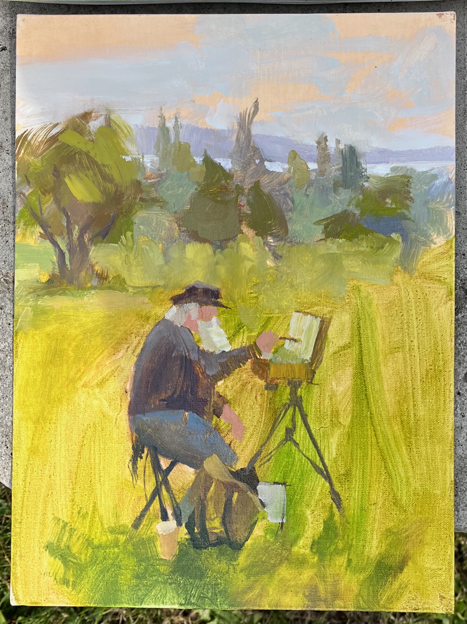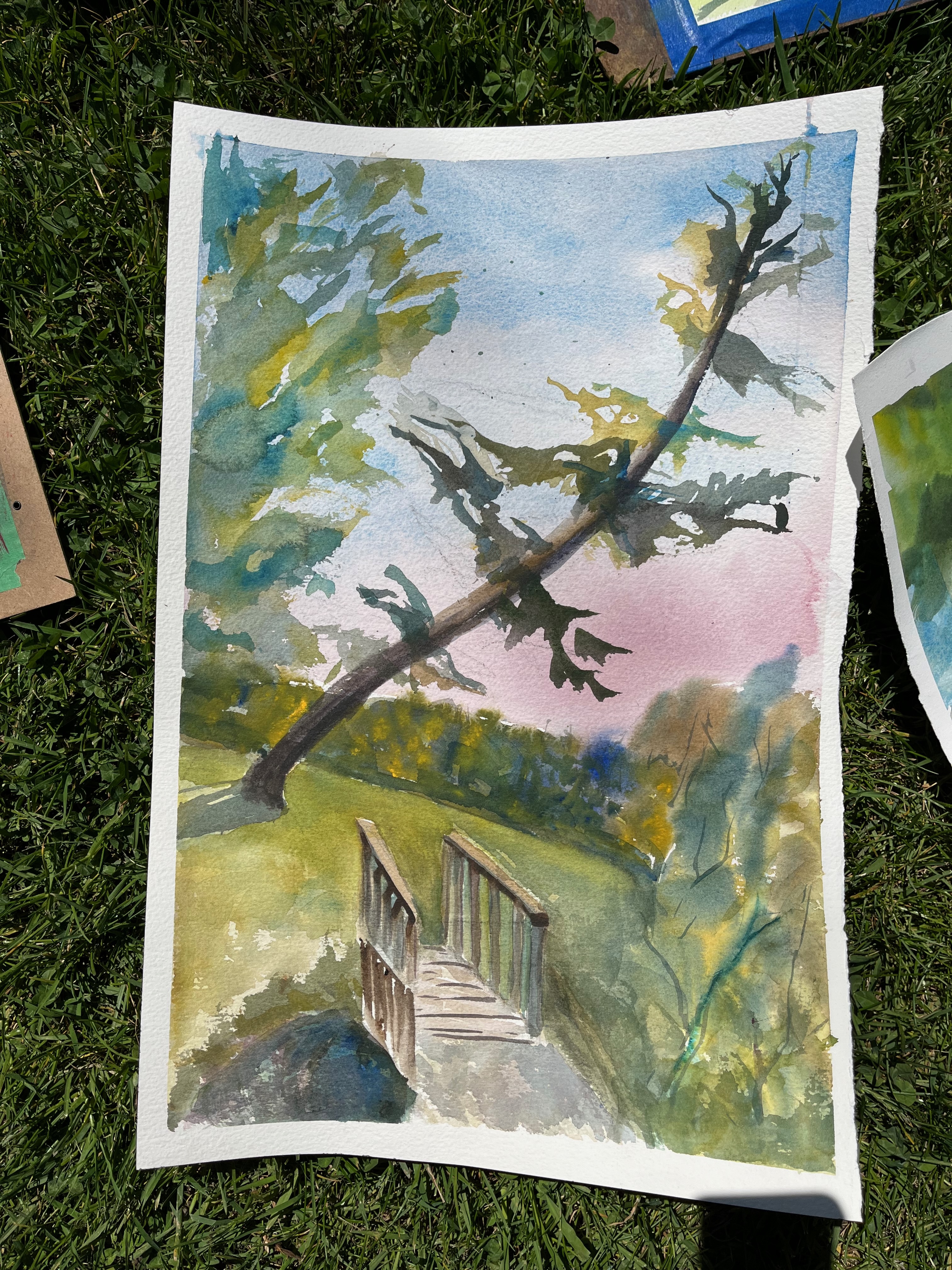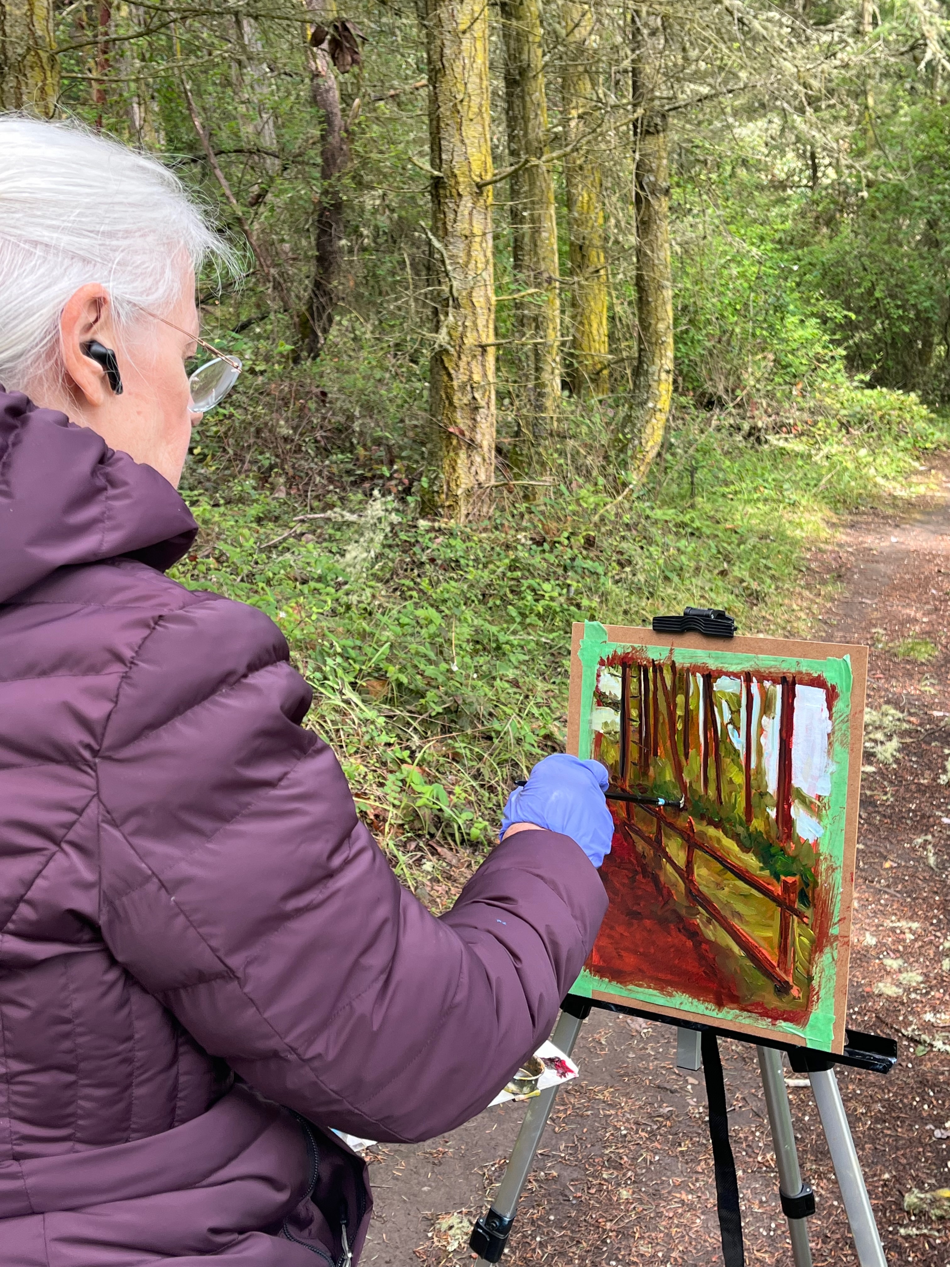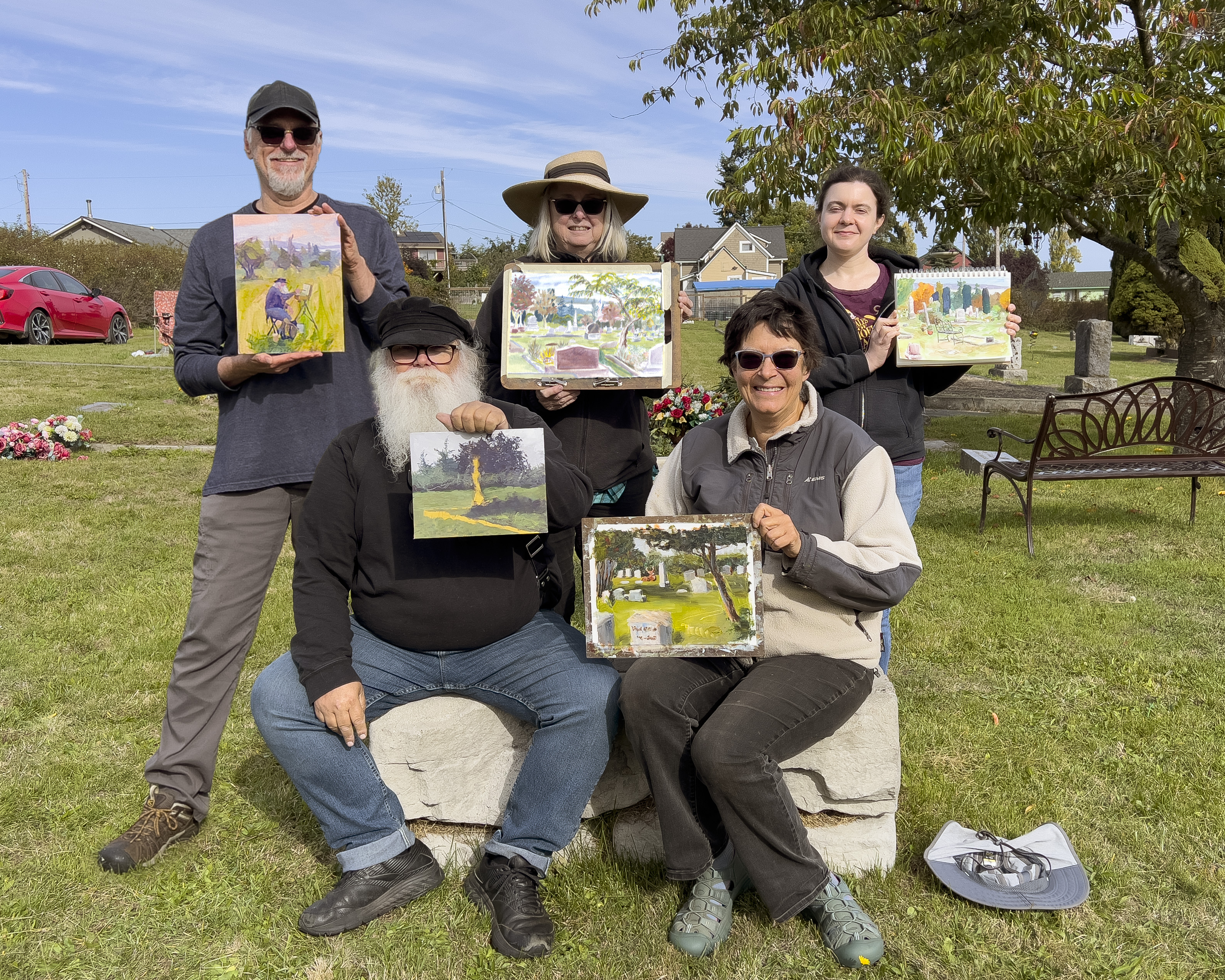 What we do: We spend a few hours creating an artwork inspired by our amazing local scenery. About a half-hour before we break, we gather to admire what each person has done.