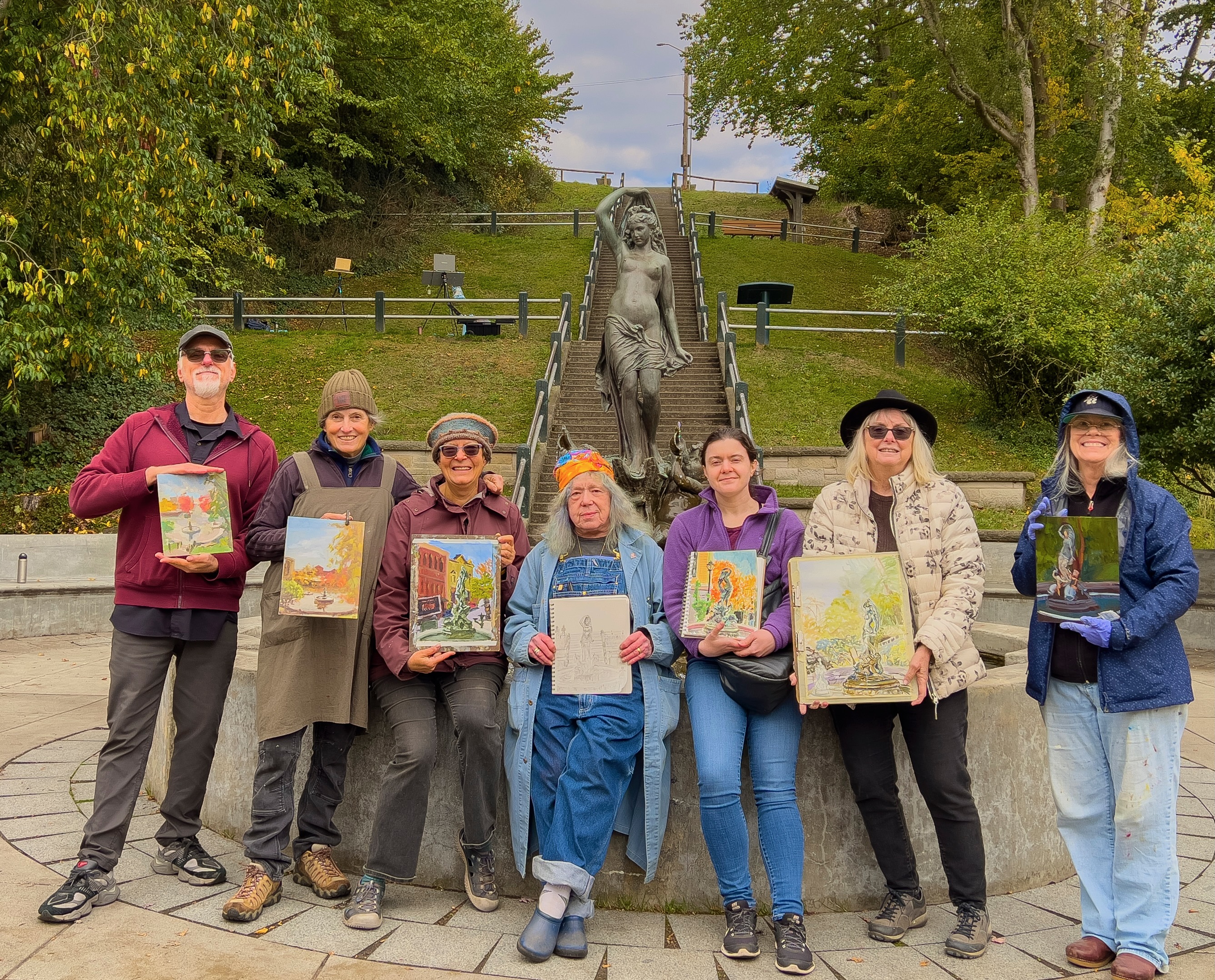 What to bring: your favorite portable painting or drawing materials (or both!), drinking water, sunscreen, a brimmed hat, and possibly a portable chair or something waterproof for sitting on the ground. Most, but not all, locations will have a nearby restroom. In 2025, 2 locations require a Discover Pass for car parking.